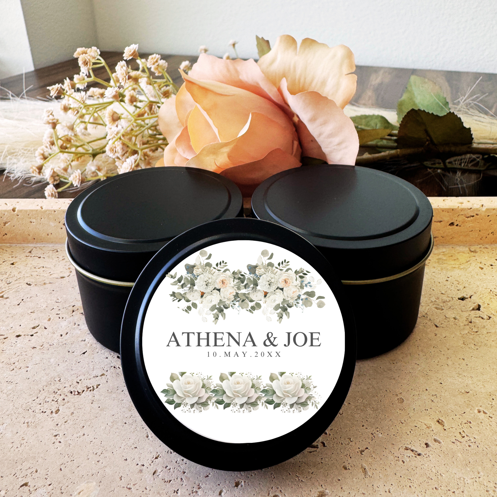 WHITE FLORAL WEDDING FAVORS - TIN CANDLE - SET OF 10 PC